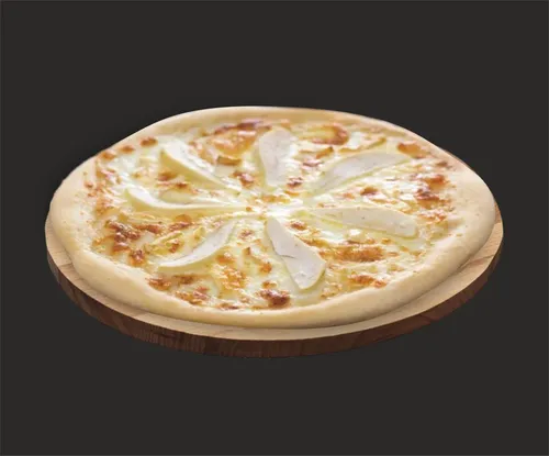 Пицца на тонком тесте, сливочном соусе, с сыром моцарелла, пармезаном, груша "конференция".