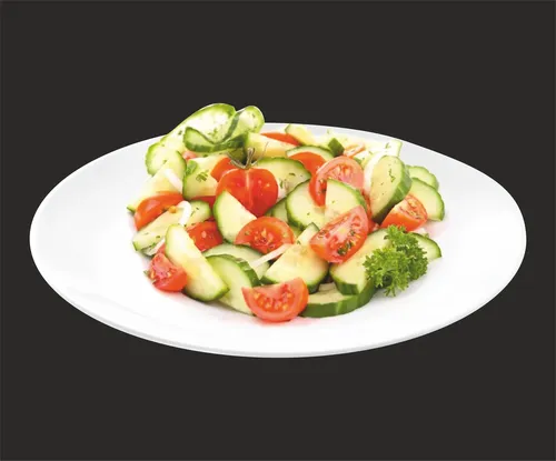 Огурцы, помидоры, салат" Фриллис ", лук красный , заправка .